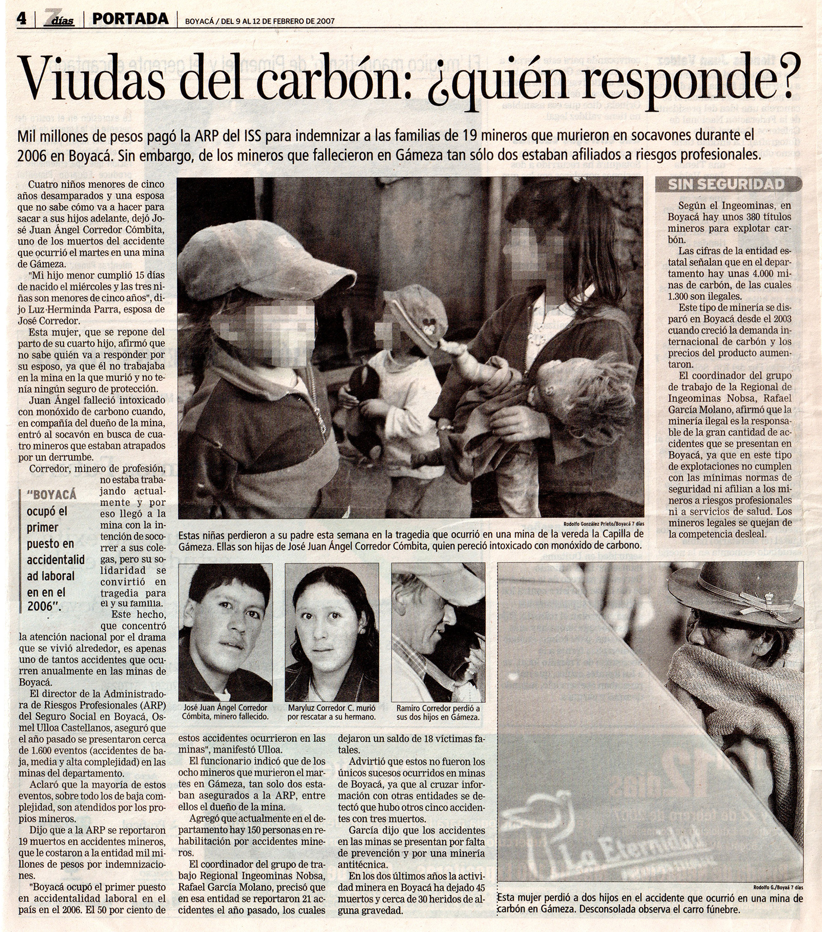 Nuestra campaña, la realizamos desde diciembre de 2006 con el apoyo inicial del grupo de Salvamento Minero del Ingeominas.
