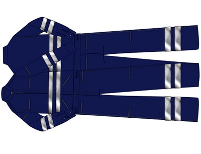 Overol dos piezas con cinta reflectiva de 1” color gris en brazos, espalda y piernas.